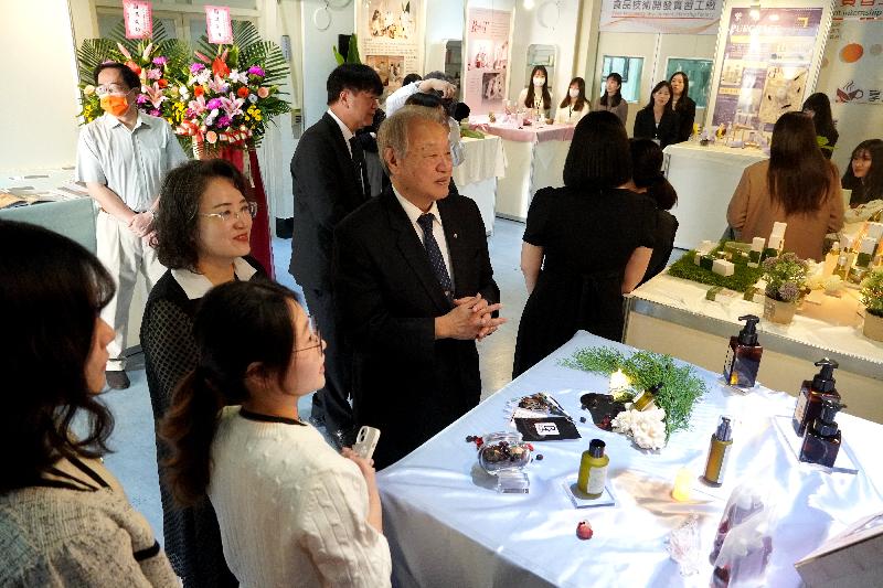 化妝品組學生以「苒光」為主題,以植物萃取創新研發化妝品成果,吸引校內外師生及業界人士關注,突顯天然、環保與健康美妝的趨勢。