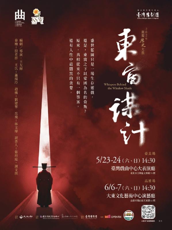國立傳統藝術中心臺灣豫劇團2026年新編歷史豫劇《東窗謀計》,講述南宋權謀風雲,啟發當代人性思辨,由臺灣豫劇團黃金陣容攜手劇場頂尖團隊,打造史詩級藝術巨作,誠摯邀請民眾走進劇場,感受戲曲藝術最動人的生命力。《東窗謀計》於5月23日及24日臺北臺灣戲曲中心、6月6日及7日高雄大東文化藝術中心演出,歡迎使用文化部成年禮金優惠,購票請上網OPENTIX系統、私訊「臺灣豫劇團」臉書粉絲專頁或電洽07-5828753轉53。